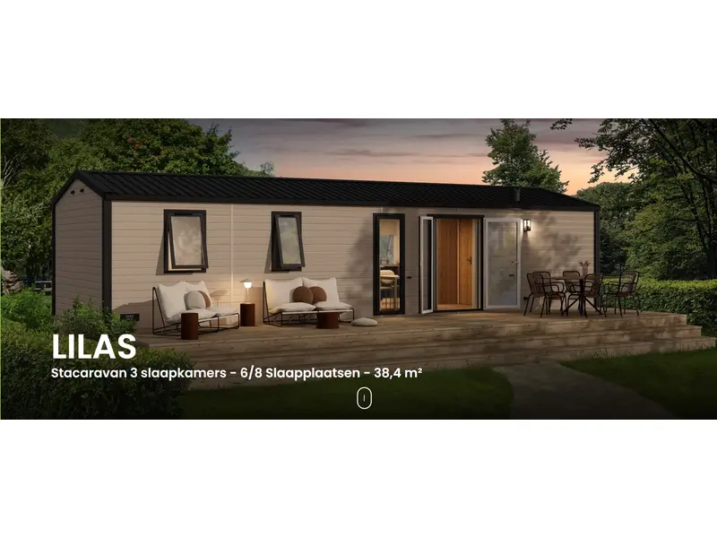 De Violette is qua grote gelijk aan de Lilas. Beide chalets zijn voorzien van 3 slaapkamers. Echter in de Violette is de inloopkast in de masterbedroom ingeruid voor een tweede badkamer. Hierdoor profiteer je van meer privacy! De middenwoonkamer in dit chalet is ruim opgezet. Er is voldoende zitruite voor het gehele gezin.