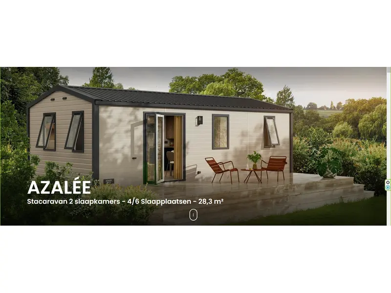 De Azalée is het kleinste middenkamer chalet in de IRM Habitat lijn. is het Franse woord voor de azalea, die gaat bloeien als het voorjaar wordt en in de zomer op zijn mooist is… In dit chalet geniet u in hetzelfde ritme zodra de eerste mooie dagen zich aandienen. Dit compacte model heeft twee slaapkamers, apart toilet en een zeer comfortabele zitkamer. Ideaal om uw kleinkinderen of uw vrienden te ontvangen, de hele zomer lang.