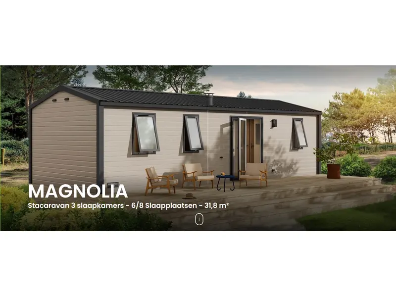 Een heerlijk chalet voorzien van een middenkamer. Geschikt voor grote gezinnen en families! De Magnolia is een model met ongeëvenaarde mogelijkheden. Het is zelfs mogelijk gezellige dinertjes voor 8 personen te organiseren in de eethoek. De Magnolia is voorzien van 3 slaapkamers, badkamer en apart toilet.