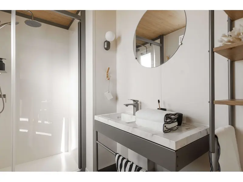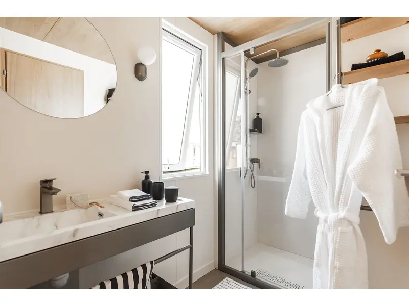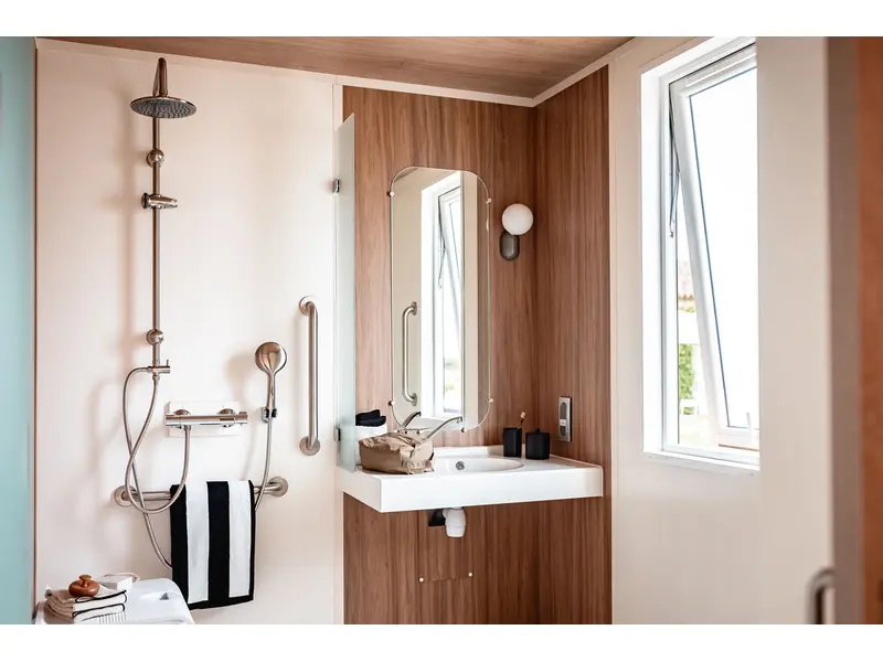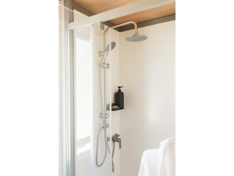 Gezellig! De O'Hara 884 is ook verkrijgbaar in de O'hara 884 Cote Jardin. Een concept dat O’Hara creëerde in 2020. De Cote Jardin heeft een extra deur aan de achterzijde van het chalet. U zult de mastersuite waarderen met directe toegang tot de Easy Clean doucheruimte. Dit grote topmodel zal comfortabel plaats bieden aan al uw gasten.