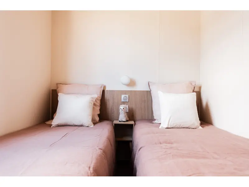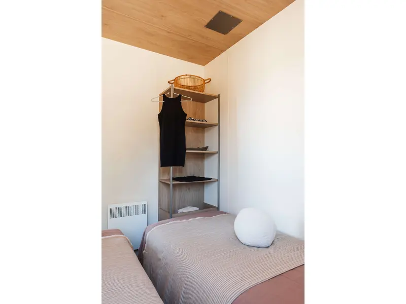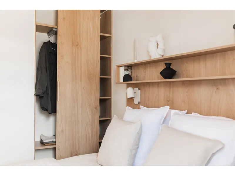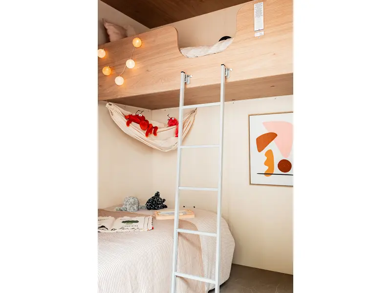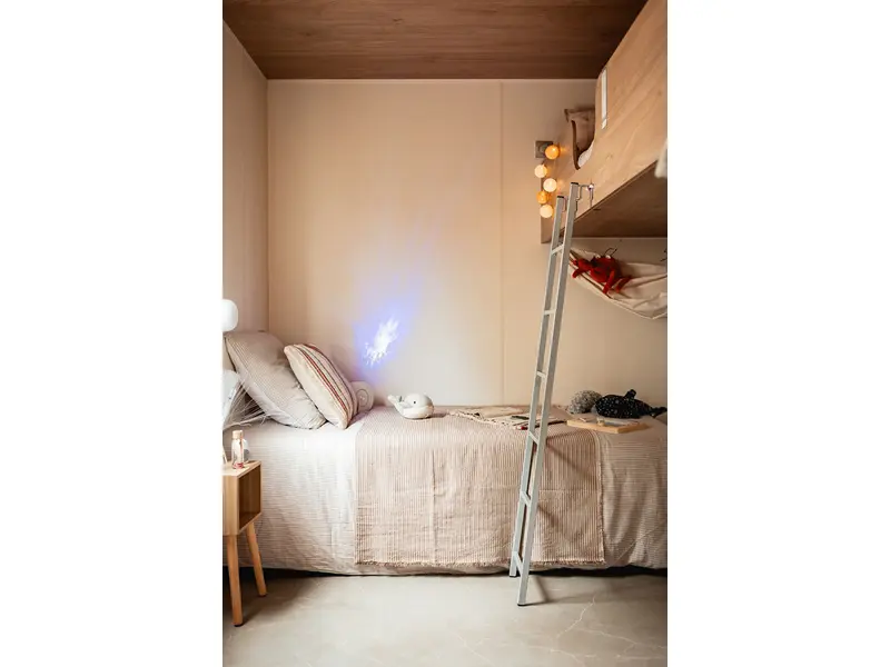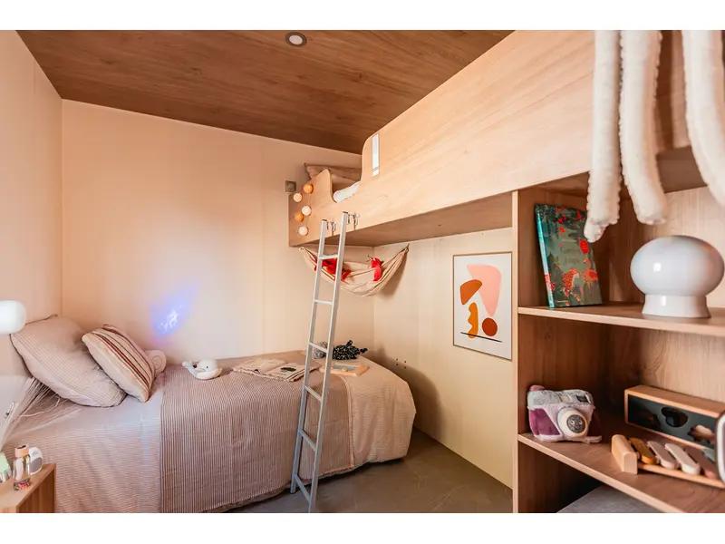 Aanpasbaar! De O'Hara 865 is voorzien van 2 slaapkamers en 2 badkamers met veel comfort. Dit chalet is uitgerust met een inbouwkeuken en-suite met nog meer licht dankzij de horizontale pui! Dit chalet is ideaal voor gezinnen, want het kan worden omgebouwd naar twee aparte suites met de optie ‘hotelierspakket’.